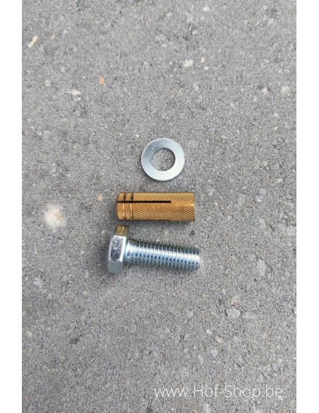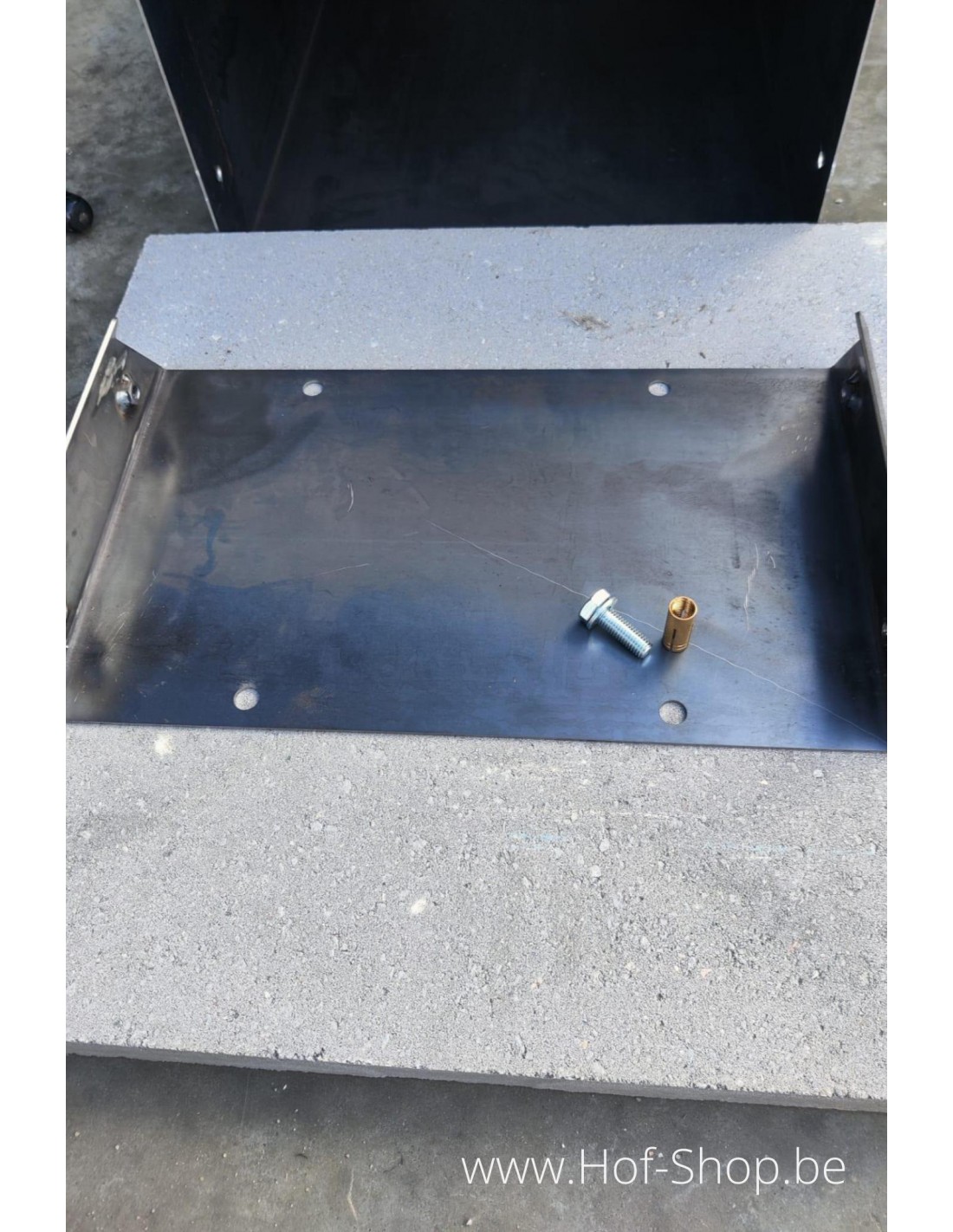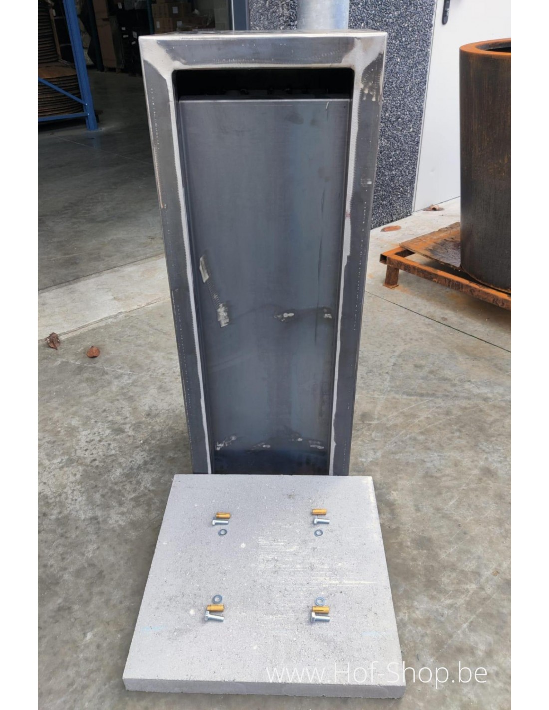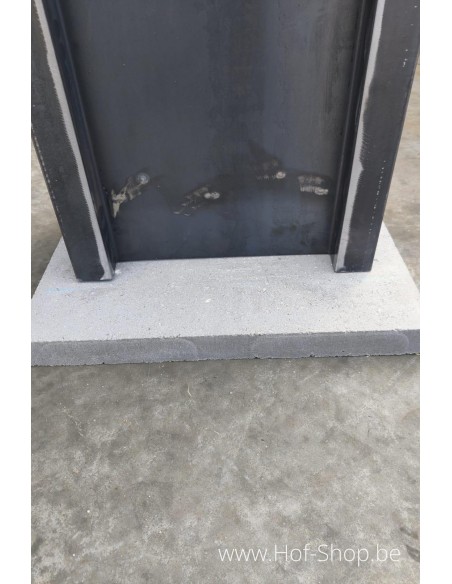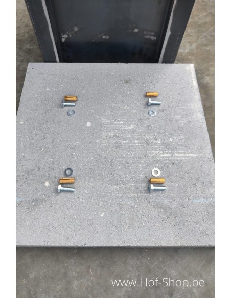 Socle en béton avec boulons de fixation assortis. 50 x 5 x 50 cm (L x H x L). Les trous sont pré-percés.