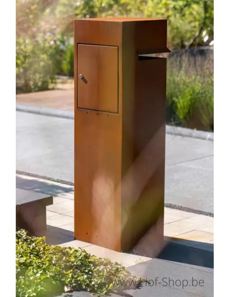 Corleone est une boîte aux lettres autoportante, austère, en acier Corten, qui présente également une belle finition. C'est un véritable accroche-regard pour votre maison ! Corleone peut être ancré dans le sol par une base en béton.