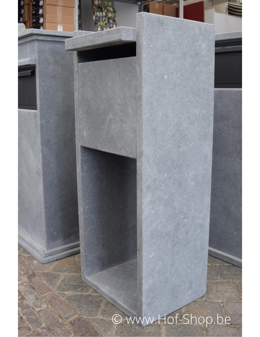 VASP produit des boîtes aux lettres de qualité supérieure ! La pierre naturelle utilisée est la pierre bleue belge. Cette pierre naturelle a une structure fermée et n'est donc pas poreuse. Un matériau idéal pour nos conditions climatiques.