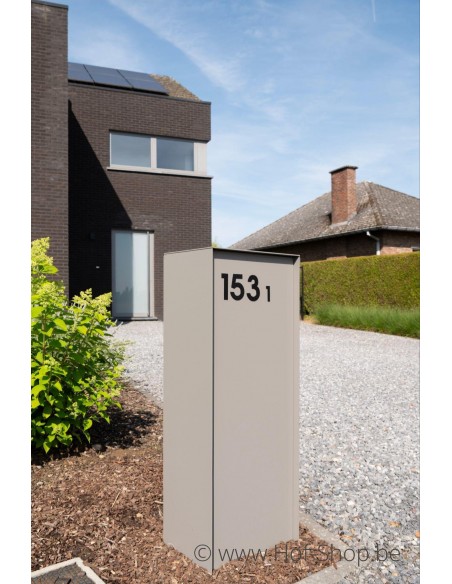Personnalisez votre boîte aux lettres en ajoutant votre numéro de maison et/ou votre nom. Un numéro de maison peut être réalisé avec des chiffres adhésifs (par exemple en acier inoxydable, laqué blanc, etc.). De cette manière, votre boîte aux lettres est également conforme à la réglementation, qui stipule que "le numéro de maison doit être visible et lisible de la voie publique".