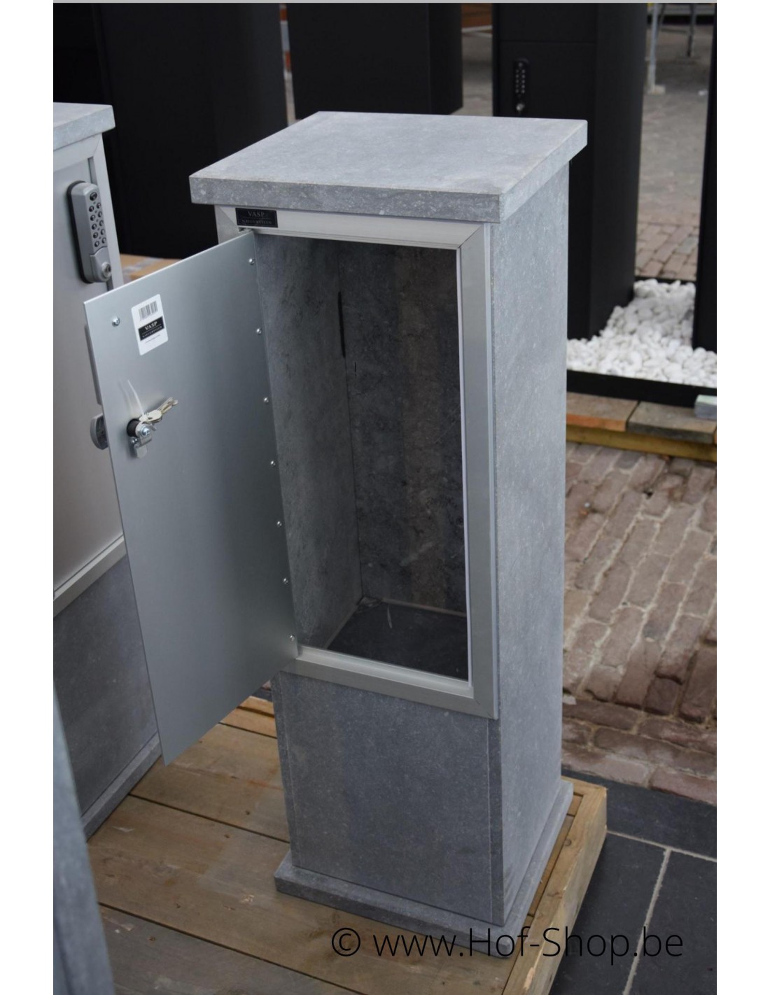 VASP produit des boîtes aux lettres de qualité supérieure ! La pierre naturelle utilisée est la pierre bleue belge. Cette pierre naturelle a une structure fermée et n'est donc pas poreuse. Un matériau idéal pour nos conditions climatiques.