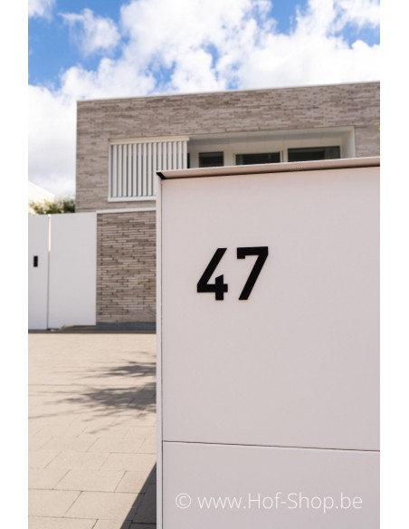 Numéro en aluminium (RAL 9005 texture noir mat) à fixer avec du ruban adhésif double face (inclus). Ce numéro de maison complète votre boîte aux lettres !