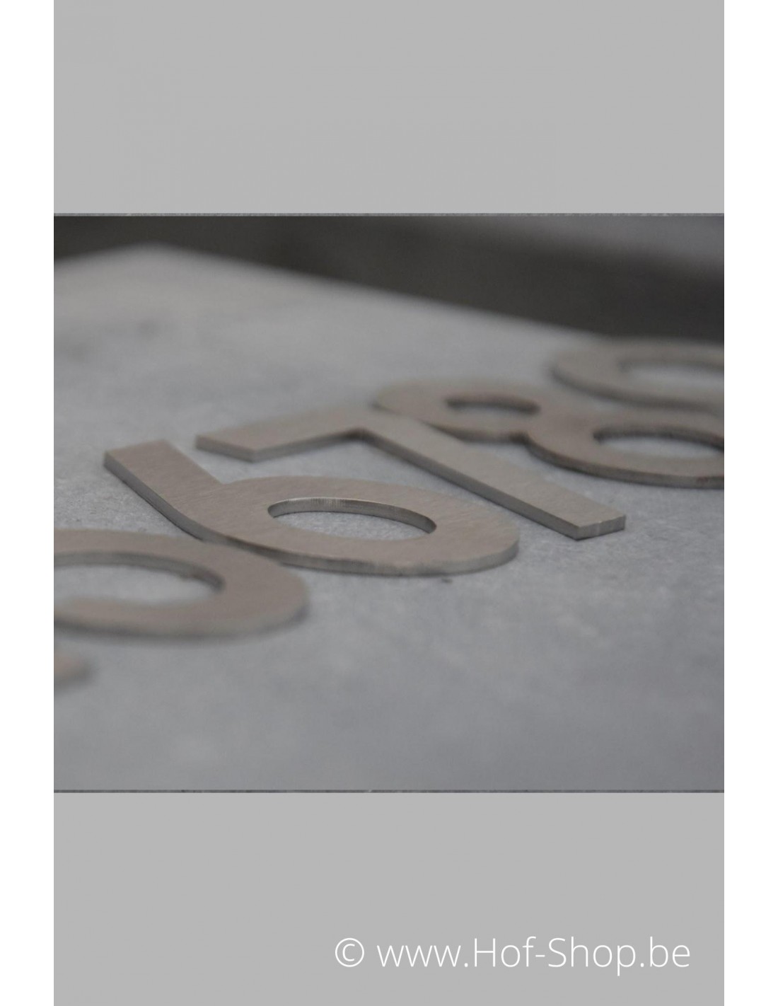 Cijfer in inox te bevestigen met dubbelzijdige kleefband (inclusief) of siliconenlijm (exclusief).