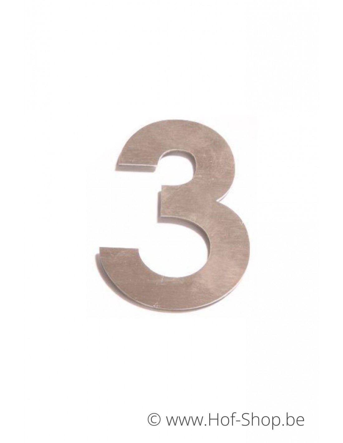 Nummer 3 - inox 8 cm hoog (huisnummer 'fuji' KatoDesign)