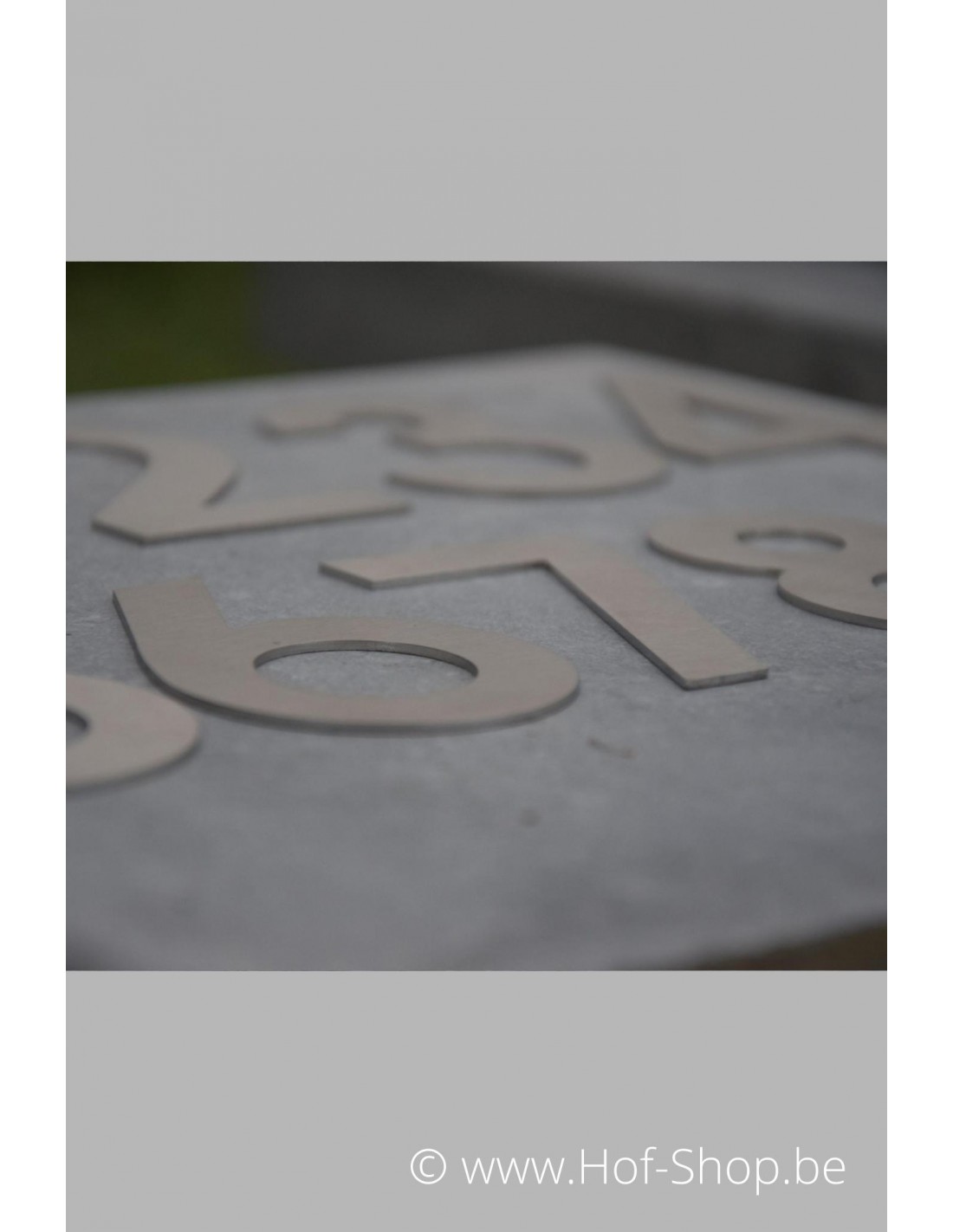 Cijfer in inox te bevestigen met dubbelzijdige kleefband (inclusief) of siliconenlijm (exclusief).
