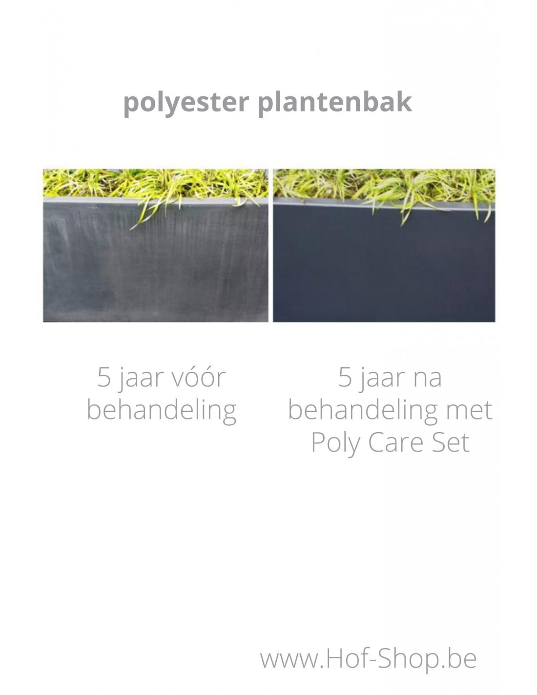 Het beste product voor het reinigen en onderhouden van onze polyester plantenbakken is de 'Cleaner + Protector set' die wij aanbieden op onze webshop.